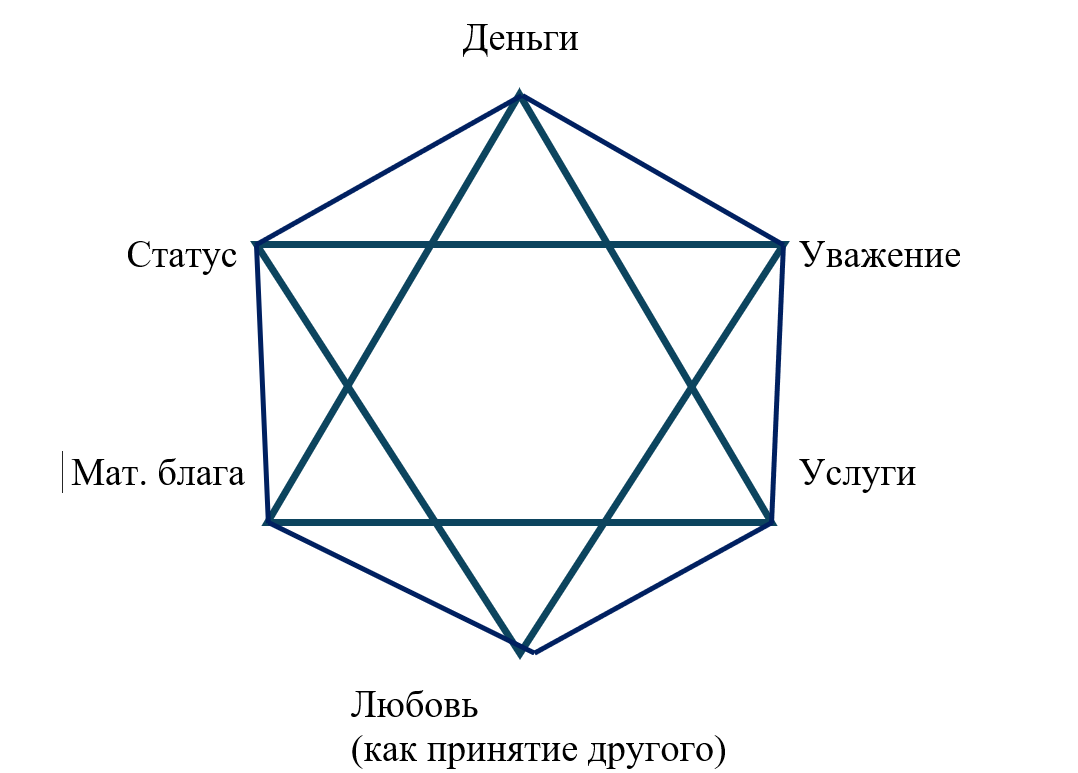 Основываясь на использовании и обмене которых вы можете, как бы во-вторых, решить любые объективные проблемы. Например, обменяв материальные блага на деньги или услуги, а статус на уважение, материальные блага…