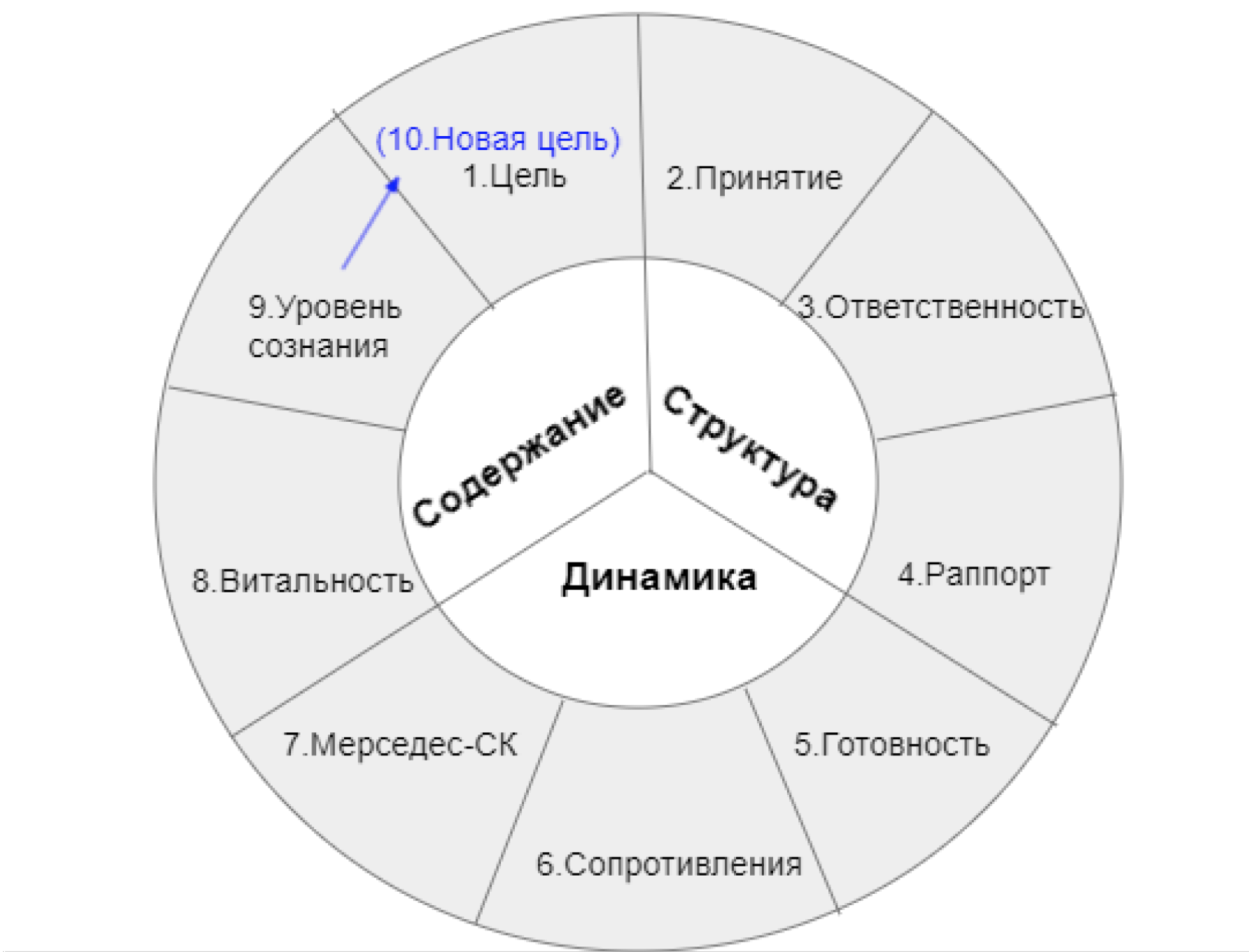 При выходе на виток другого масштаба человек ставит новые цели, обозначенная схема может помочь в работе на любом уровне. Придерживаясь алгоритма, можно продолжать двигаться по спирали, начиная вновь с первого шага.